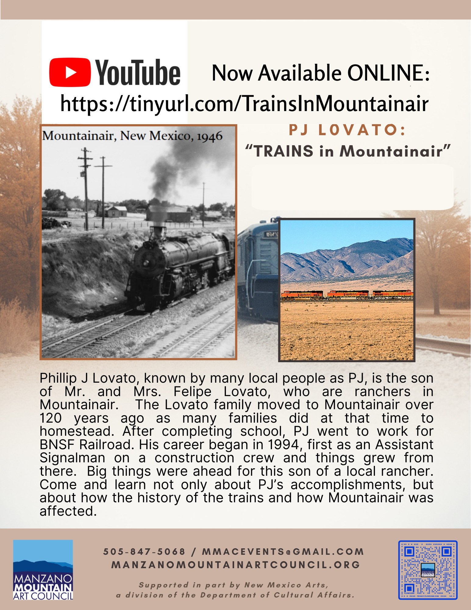 Latest news Lectures Member News Video Speaker Series January 21, 2024 by Julia Brown View on YouTube! 2025 Speaker Series Ghost Towns of New MexicoJohn Mulhouse, Author: “Abandoned New Mexico” “Women of the West” –A Living History of the Pioneer Women of Torrance CountyDixie Boyle and Donna Deiner Maria de Agreda – “The Blue Nun”Martha Vera, Honorary Consul of Spain —————————————————————- 2024 Speaker Series: Alex ArnoldTiffanie OwenDixie Boyle – part ADixie Boyle – part B Saturday, February 17th & 24th, 2024 Starts at 2pm Location: MMAC CENTER 101 E Broadway Mountainair, NM 87036 Share: Share on: Tags:A HISTORY OF COWBOY ART AND JOE J. BRAZILALEX ARNOLDBilly the KidDIVERSITY IN THE HEART OFNEW MEXICODIXIE BOYLEFebruary Speaker SeriesFree EventJoe J. BrazilMMACMountainairSalinas Pueblo Ruins National MonumentTHE REAL STORY OF BILLY THE KIDTIFFANIE OWENTown of MountainairVisit Mountainair